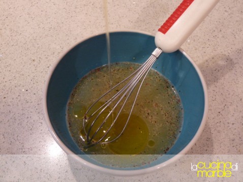 preparare una vinagrette con il succo del limone spremuto, sale, pepe ed olio