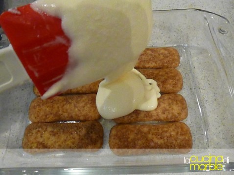 facciamo un altro strato di biscotti inzuppati, magari invertendo la disposizione rispetto allo strato precedente