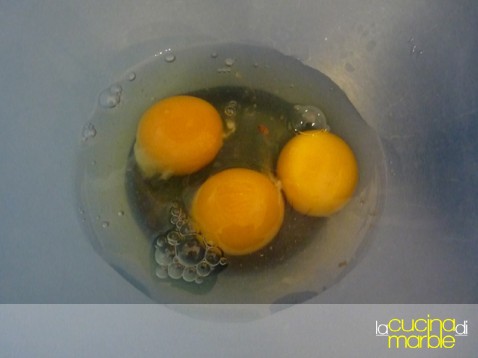 per l'impasto del dolce procedere nel modo classico: aggiungere lo zucchero alle uova e montare bene fino a che il composto non risulterà più chiaro e spumoso