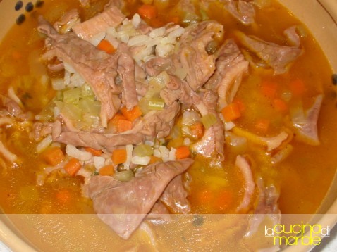 non appena sono appassiti unire il lampredotto tagliato a liste (anche con la trippa un ottimo risultato)