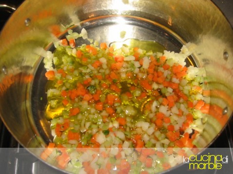 rosolare gli odori tritati grossi in olio